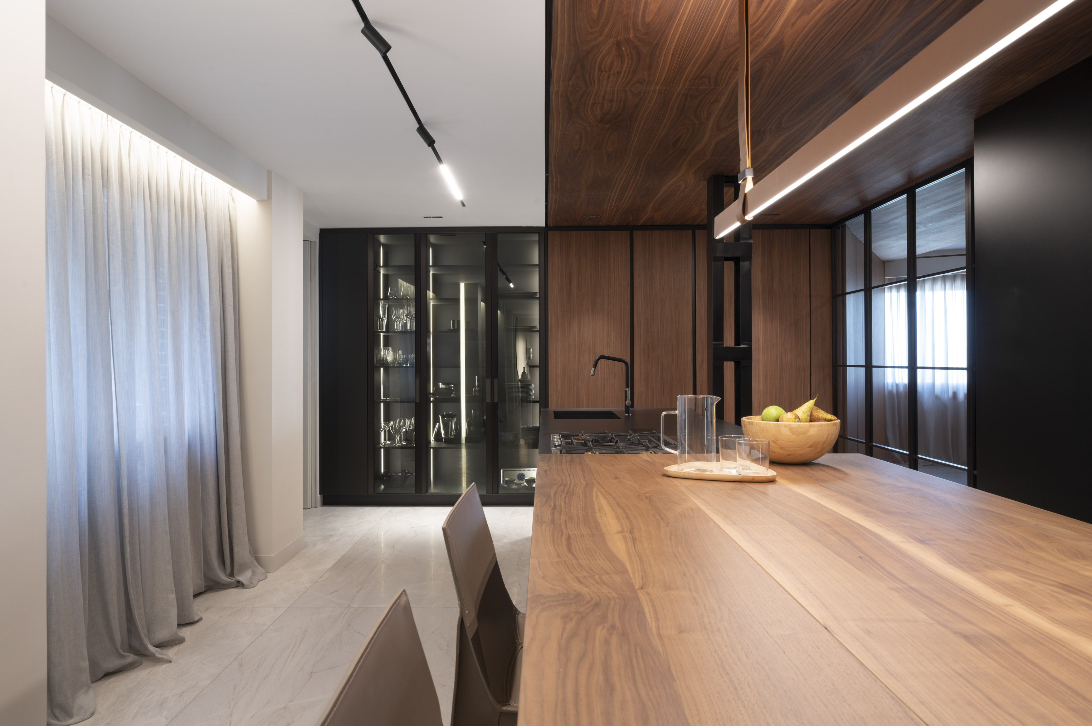 Como en todos los trabajos de Pepe Cabrera Homes, se establece un diálogo entre aspecto y función, entre diseño y calidez, entre lo privado y lo abierto. Y, en el epicentro, una cocina Poliform de la que emana el conjunto, que conecta, que acoge la vida cotidiana y define la esencia del proyecto.