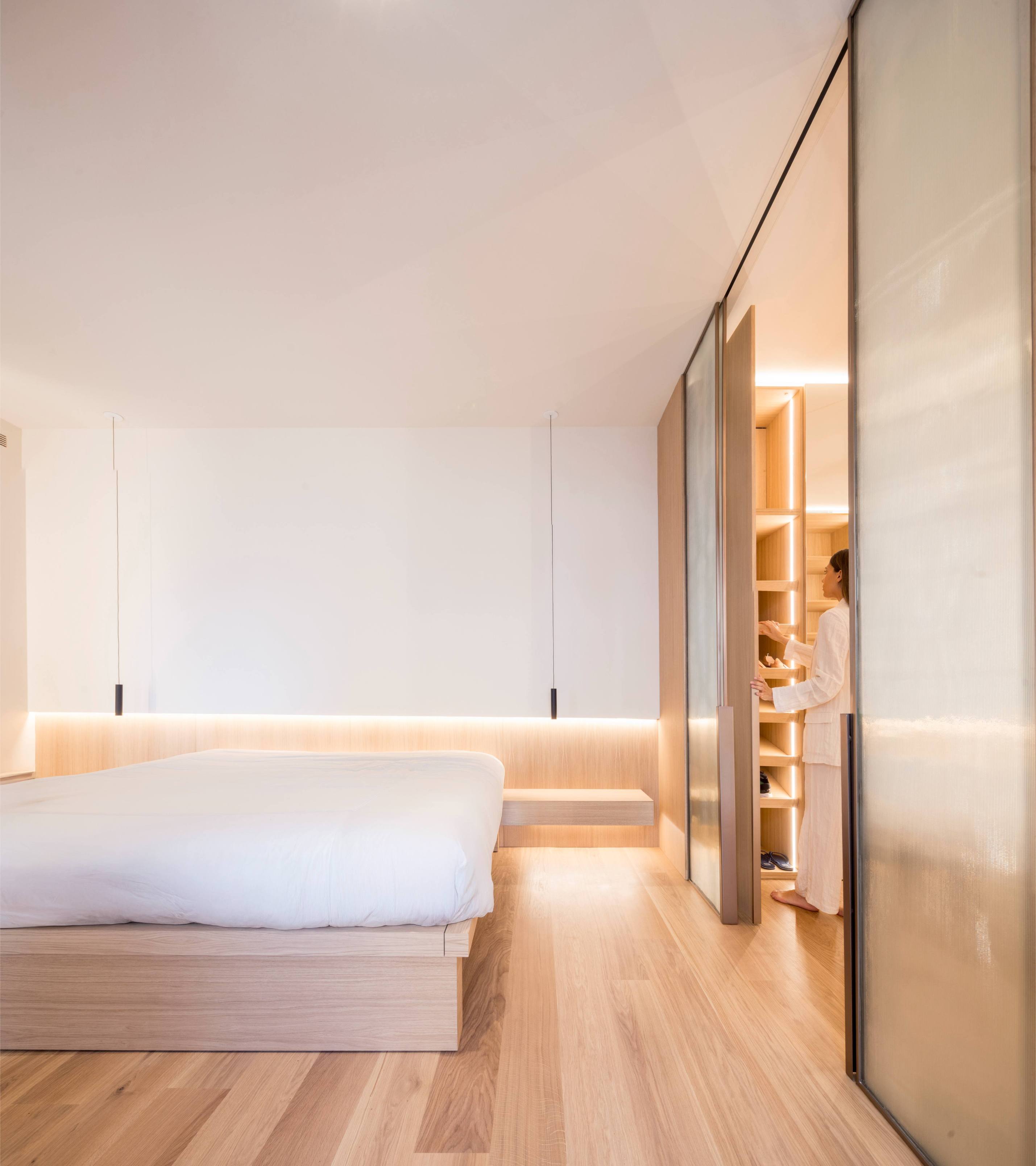 El mobiliario a medida, desde la cocina integrada hasta los vestidores, se alinea con la arquitectura para crear un conjunto armónico y funcional. Cada rincón está pensado para habitarse con elegancia y sencillez.